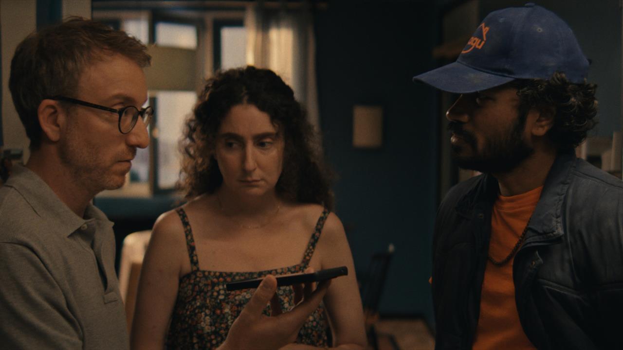 Mais dans “Veuillez patienter”, le temps n’est pas seulement un thème : il devient un outil comique et dramaturgique. Sa suspension rapproche presque le film du conte ou de l’absurde théâtral. Ici, ce qui saute aux yeux, c’est l’inconfort qui s’installe très tôt entre le couple, le travailleur sri-lankais et le temps lui-même. Les personnages sont découverts, mis à nus par leurs petites frustrations respectives. Cette attente déraisonnable met à l’épreuve leur façon de vivre ensemble et questionne le rapport à l’autre dans un espace domestique. Dès lors, l’appartement devient un lieu de tension sociale entre intime et public, entre privé et professionnel. L’intrusion prolongée de cet étranger transforme le foyer en micro-société contrainte et cette sphère privée qui s’apprête à accueillir la petite Léa n’est plus un refuge mais un lieu d’épreuve. Cela va sans dire, c’est la question de l’altérité et de l’étranger qui est posée, celle de l’accueil, avec une petite résonance politique. On passe de la peur de l’autre, le rejet, la méfiance à l’accoutumance jusqu’à l’attachement.
